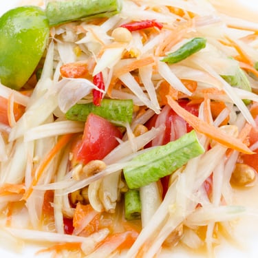 Similaires aux salades occidentales, ces plats contiennent souvent un agent acidifiant, généralement du jus de citron vert, et comportent l'ajout d'herbes fraîches et d'autres légumes verts dans leur préparation. Les salades thaïlandaises ne sont pas servies en entrée, mais sont normalement consommées comme l'un des plats principaux d'un repas de style buffet thaïlandais.