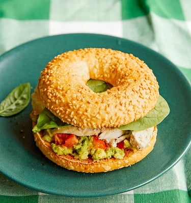 Le bagel est un rouleau en forme d’anneau d’une dizaine de centimètres. Il est réalisé grâce à une pâte au levain naturel plongée quelques instants dans de l’eau bouillante, puis passé au four.